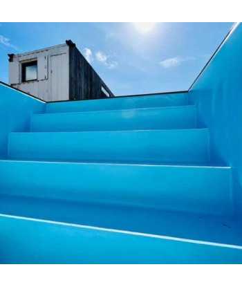 Funcionalmente, la piscina contenedor es similar a cualquier piscina enterrada, pero su diseño único y elegante incluye un contenedor de transporte en lugar de una cimentación de hormigón.